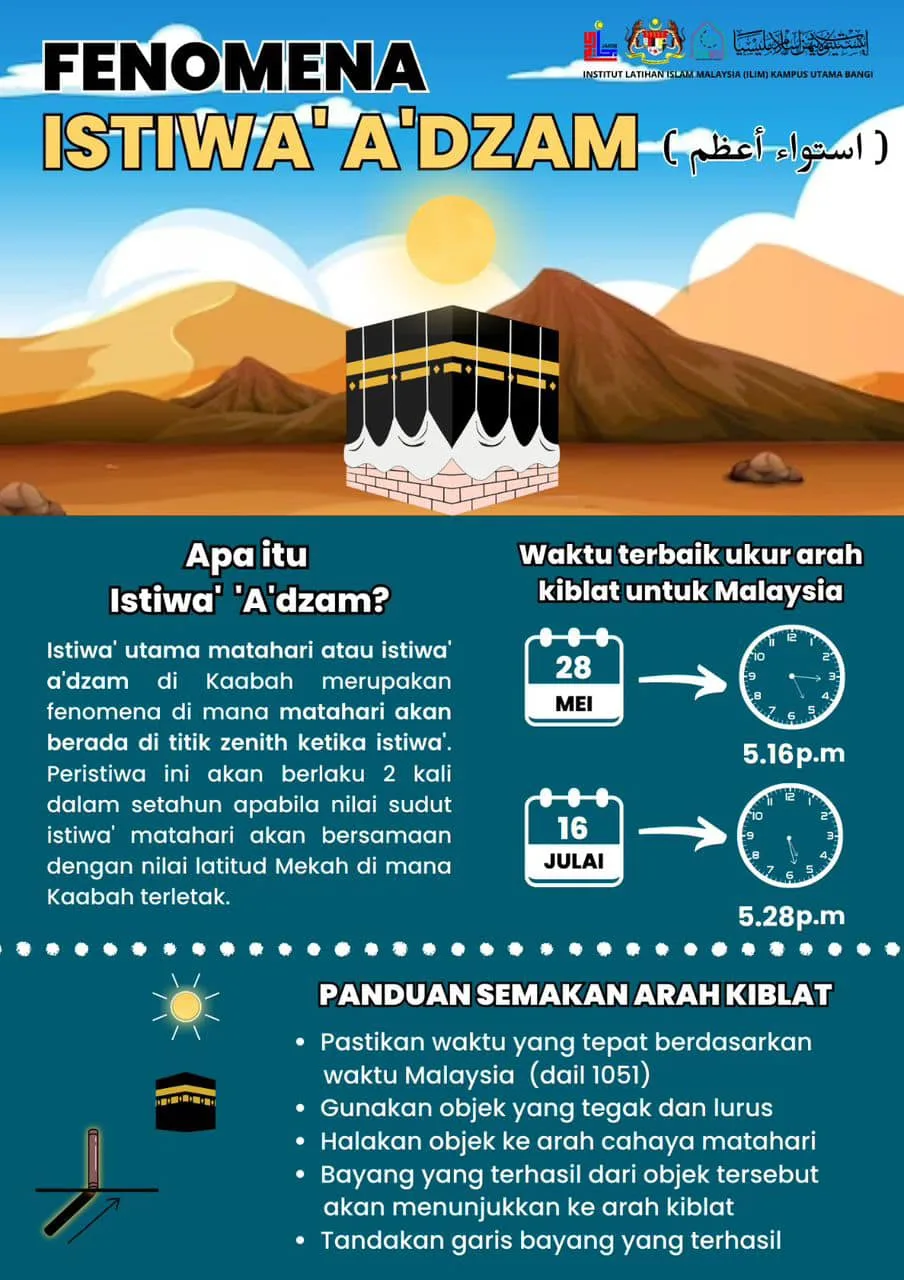 Istiwa’ A’zam merupakan salah satu fenomena astronomi yang dinantikan oleh umat Islam seantero dunia dan berlaku dua kali setiap tahun. Peristiwa ini menawarkan peluang untuk memastikan arah kiblat dengan tepat, terutama di rumah masing-masing.