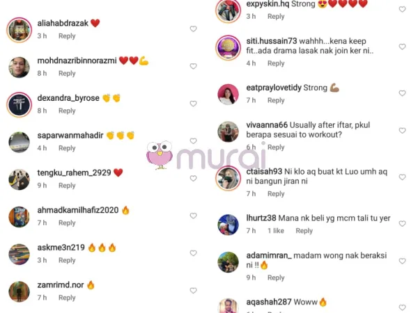 Melihatn perkongsian tersebut, ramai yang memberi komen dan emoji sebagai tanda mengagumi kekuatan dan sikap tidak mudah putus asa selebriti tersebut untuk kekal cergas dalam bulan ramadhan ini.