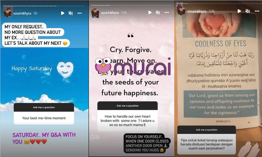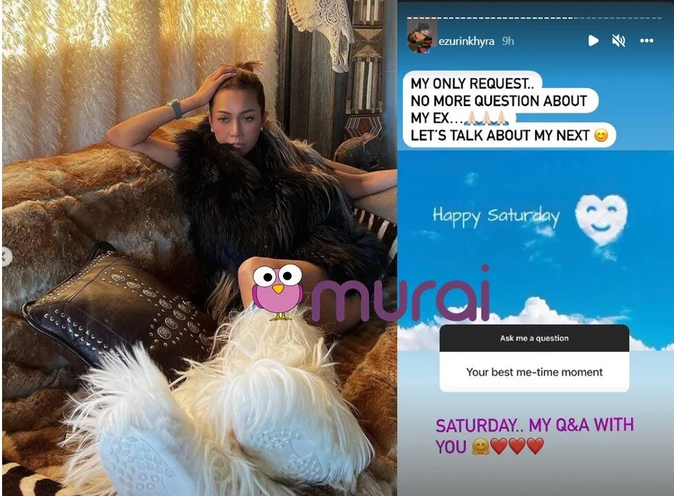 Ezurin juga turut menegaskan kepada netizen supaya tidak lagi mengajukan soalan berkenaan bekas suaminya. Baginya, lebih baik fokus kepada apa yang akan berlaku untuk seterusnya.