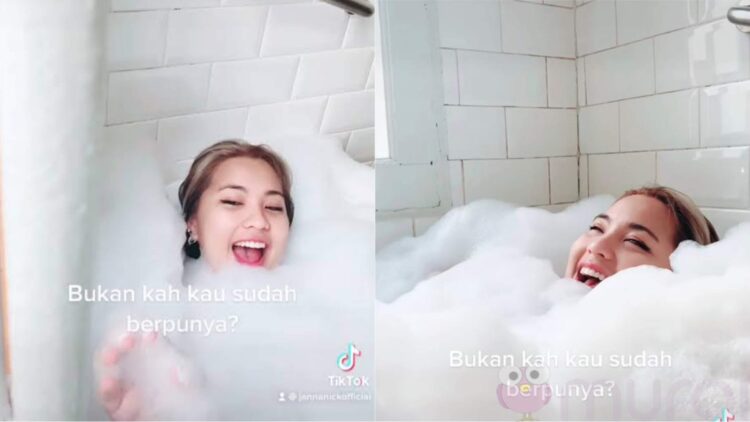 Menerusi video yang dimuatnaik di Instagram, Janna dilihat berada di dalam tub mandi yang dipenuhi dengan buih yang menutupi seluruh tubuh badannya.