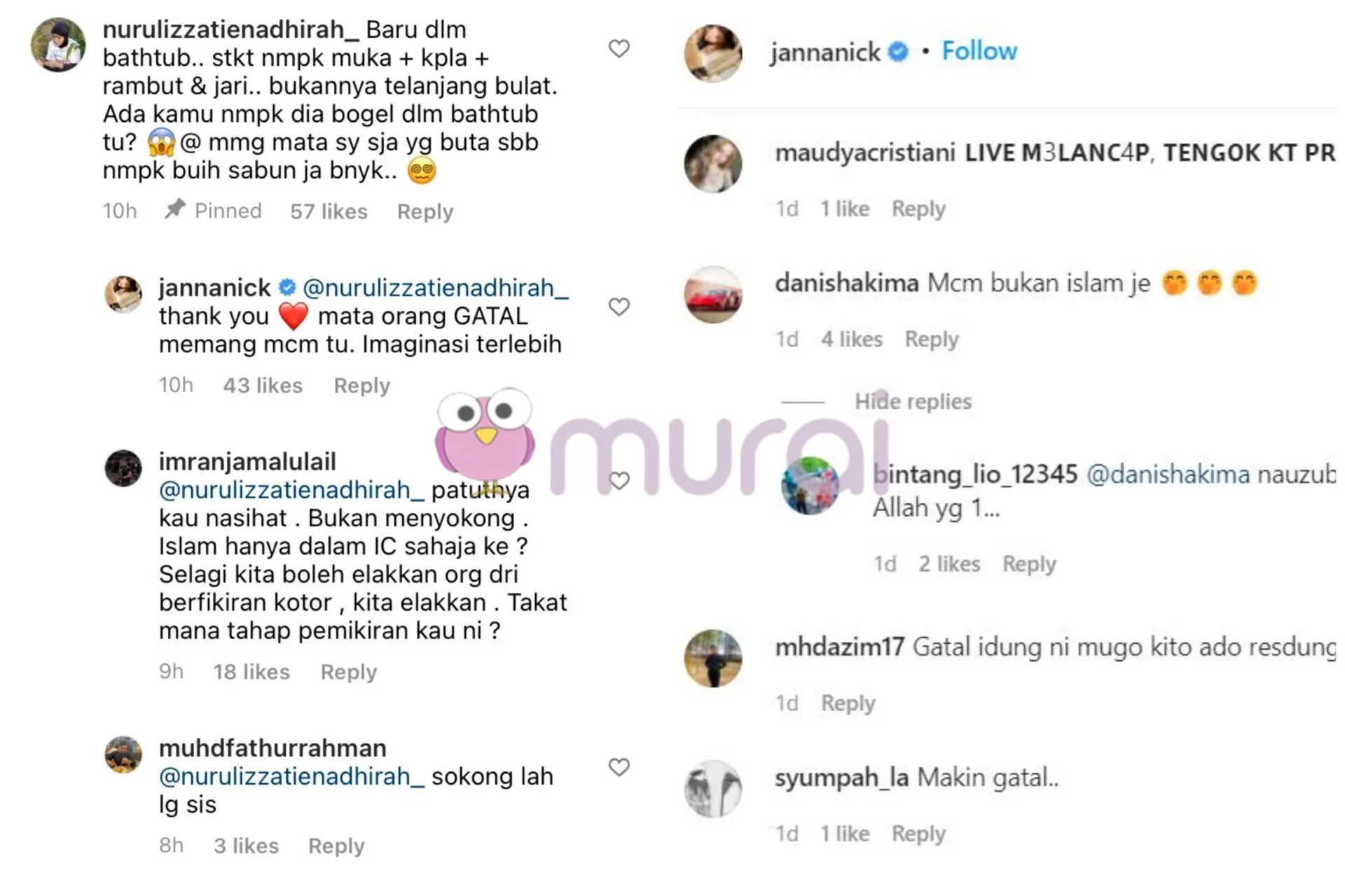 Tinjauan Murai di ruangan komen penyanyi dan pelakon ini mendapati rata-rata netizen mengkritik dan menegur aksi Janna ituy ang dilihat tidak sesuai dilakukanya sebagai individu beragama Islam.