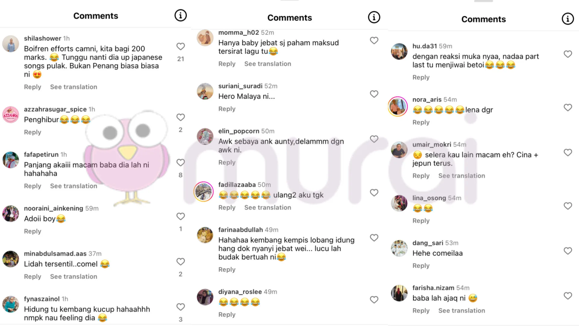 Meninjau ke ruangan komen, warganet memuji usaha Jebat untuk menambat hati kekasih, malah ada yang berpendapat loghat Penang kebanggaan Jebat akan hilang selepas ‘gigih’ menghafal lagu Cina demi kekasih hatinya.