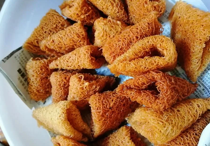 Ia digoreng panjang dan nipis, dan memiliki tekstur yang lembut dan sedikit kenyal. Kuih ini turut dikenali sebagai Kuih Jala, dan menjadi kegemaran kanak-kanak mahupun orang dewasa.