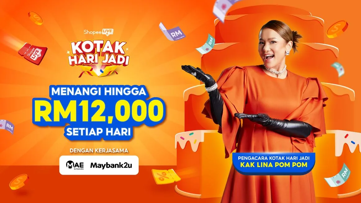 Jangan ketinggalan peluang untuk memenangi hadiah menarik melalui Shopee Live 12.12 Kotak Hari Jadi!