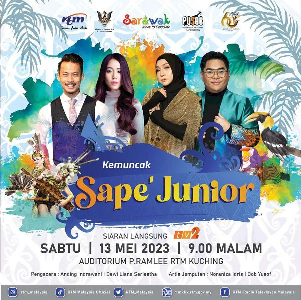 RTM menerusi saluran TV2 akan menyiarkan Kemuncak Pertandingan Sape’ Junior pada 13 Mei ini, pukul 9.00 malam yang berlangsung di Auditorium P. Ramlee RTM Kuching, Sarawak. Turut disiarkan di aplikasi RTMKlik dan Facebook RTM Sarawak.