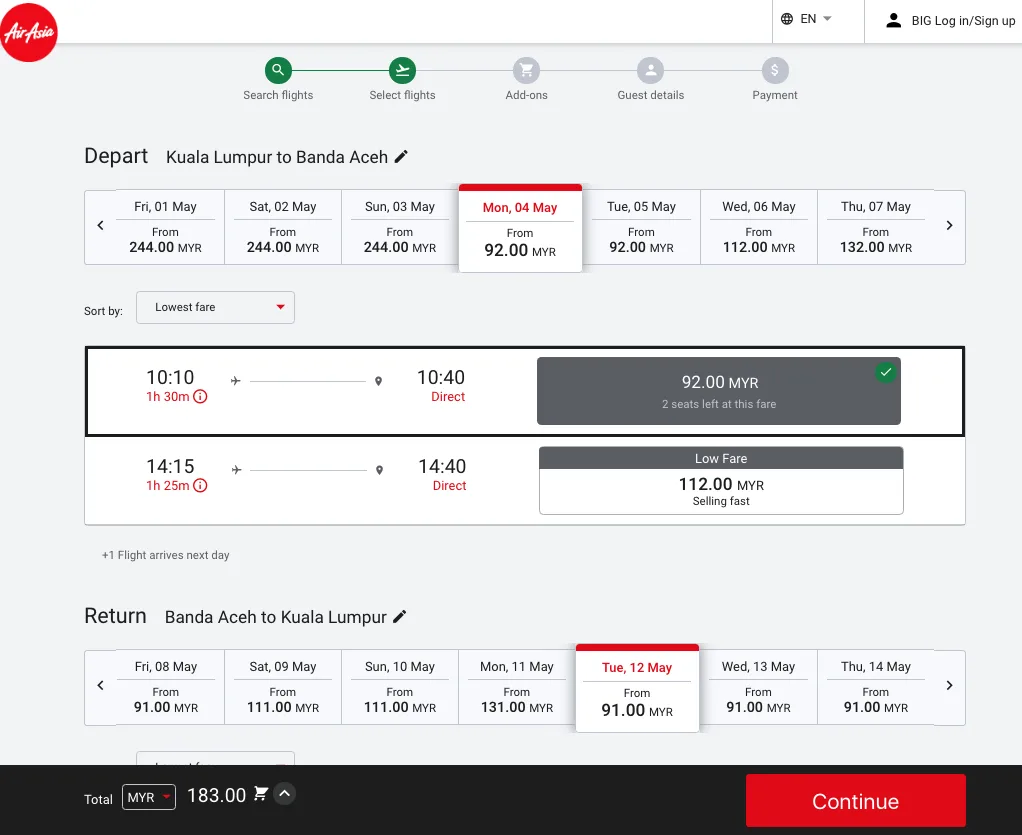 Tiket penerbangan pergi balik hanya serendah RM183 sahaja dengan penerbangan AirAsia.