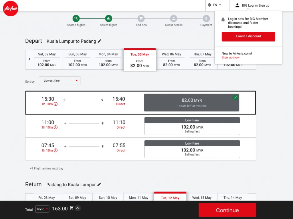 Tiket penerbangan pergi balik hanya serendah RM163 sahaja dengan penerbangan AirAsia.