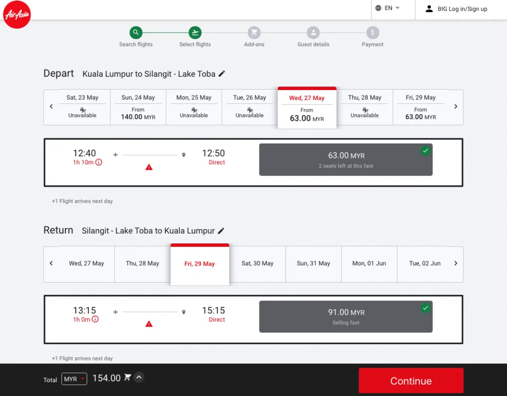 Tiket penerbangan pergi balik hanya serendah RM154 sahaja dengan penerbangan AirAsia.