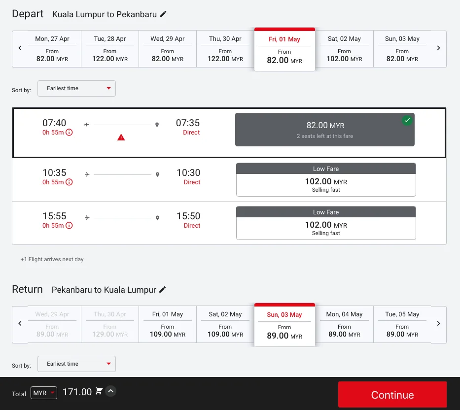 Kuala Lumpur- Pekanbaru- Kuala Lumpur [ 1 Mei 2010- 3 Mei 2020]