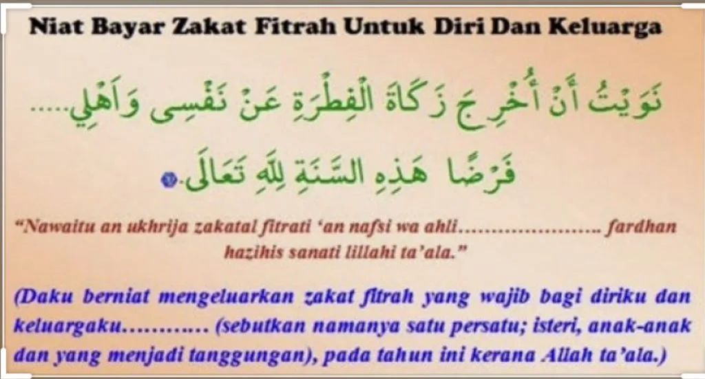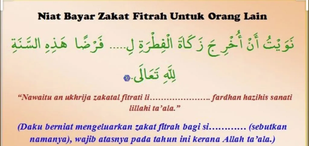 ” Inilah wang bagi menggantikan beras fitrah yang wajib ke atas diriku dan tanggunganku pada tahun ini kerana Allah Taala”.