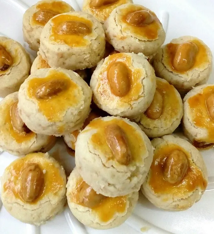 Biskut yang padat dengan isi kacang tumbuk dan disapu dengan kuning telur di atasnya serta dihiasi dengan sebiji kacang ini memang sentiasa menjadi kegemaran semua orang. Biskut mazola sangat sesuai dijadikan juadah di hari raya anda.