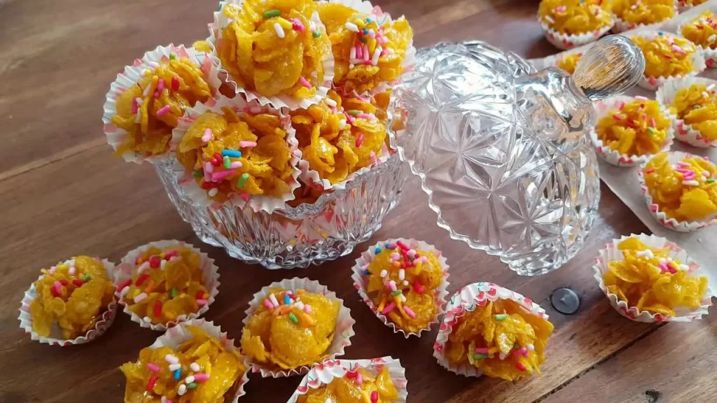 Pergilah beraya ke rumah siapa pun, memang akan jumpa cornflakes madu di atas meja tuan rumah dan kebiasaannya memang terpaksa tambah berulang kali. Bukan setakat kanak-kanak tapi orang dewasa juga pasti tak boleh berhenti menjamahnya.