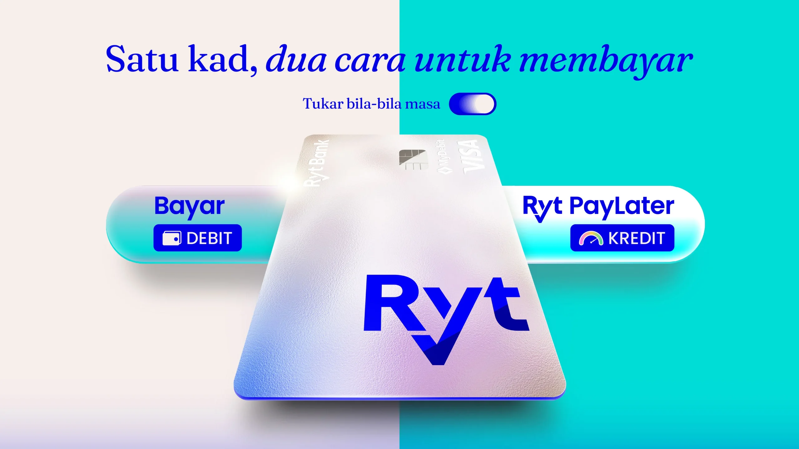 Ini yang paling win. Dengan integrasi Ryt PayLater pada kad, anda boleh pilih sama ada nak bayar terus atau tangguh dulu (PayLater).