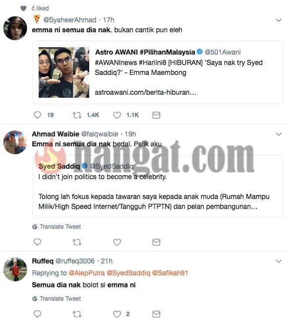 Tak ada istilah ‘try’ pun. Periksa semula laman Instagram saya dan semuanya boleh dilihat sendiri. Dari dulu lagi saya pernah memuat naik foto bersama Saddiq kerana kami memang berkawan, tetapi mungkin pada masa itu tiada sebarang isu kerana Saddiq tidak popular seperti sekarang,”