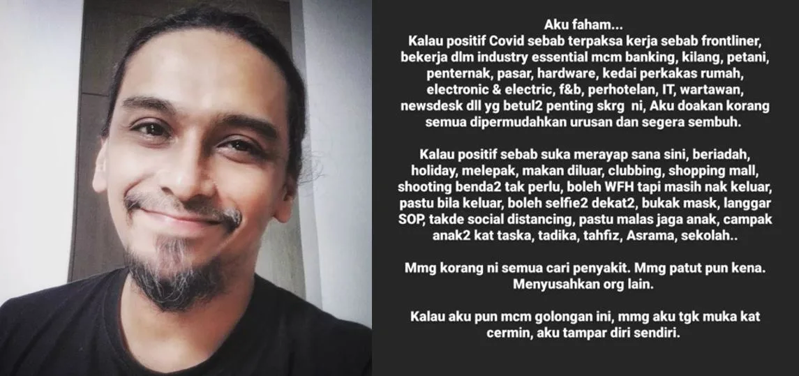 Menerusi perkongsian di Instagram story milik Damian Mikhail, dia memahami jika jangkitan virus terjadi dalam golongan yang terpaksa kerja kerana golongan ini adalah barisan hadapan, bekerja dalam industri berkeperluan dan yang betul-betul penting.