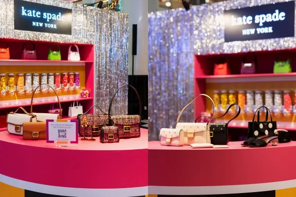 Apa yang menarik tentang sambutan percutian kate spade new york kali ni, kios pop-up interaktif tersebut berinspirasikan Candy Bar. Paparan dekorasi kios Candy Barini menggabungkan warisan serta nada gaya yang menuruti keanehan dan keseronokan; kilauan glamor tinsel dengan hamparan lantai hitam putih bercorak dam.
