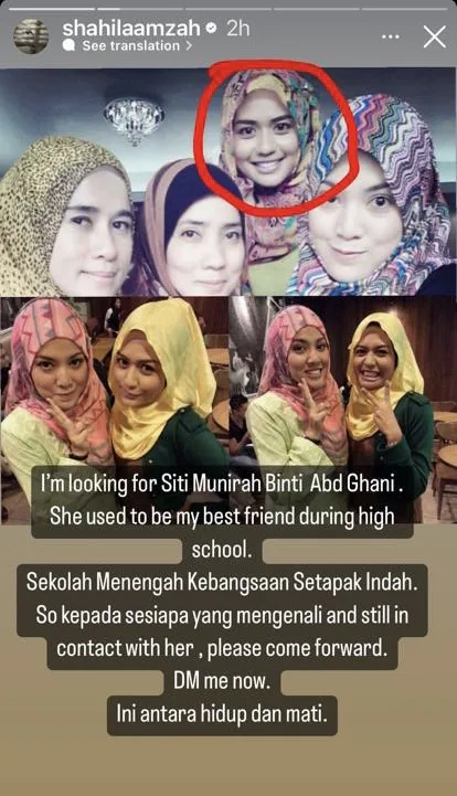 Berbahas soal ini, terdahulu Penyanyi Shila Amzah pernah memuat naik hantaran mengenai orang ketiga itu di Instagram Stories. Berdasarkan kapsyen yang ditulis, Shila, 33, mencari wanita yang bernama Siti Munirah Abd Ghani.