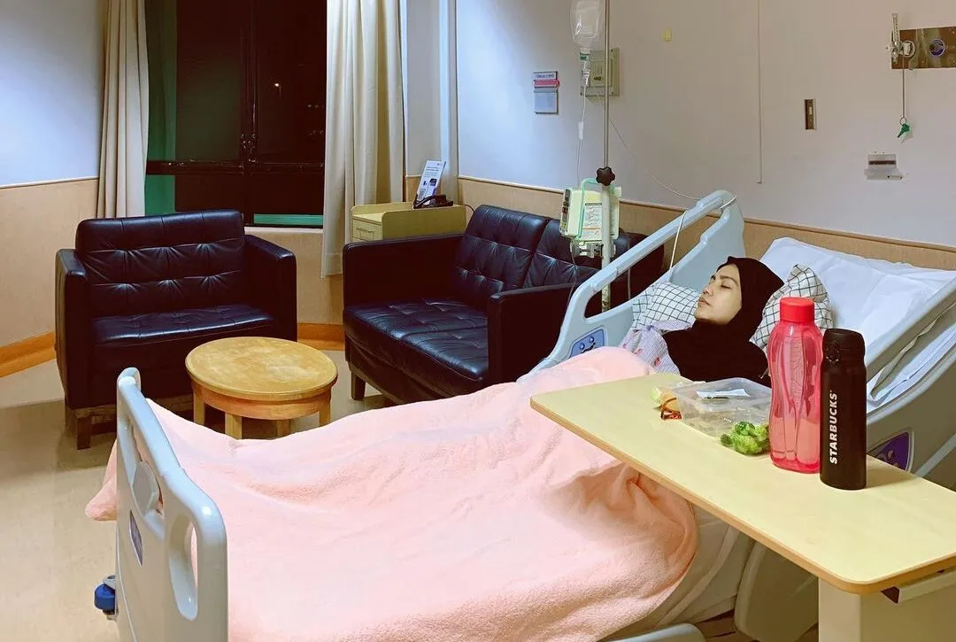“Lebih sebulan menahan sakit sampai tak tidur. Akhirnya saya mengalah. Hari ni masuk painkiller, steroid, dan ambil darah.”- tulis Elyana