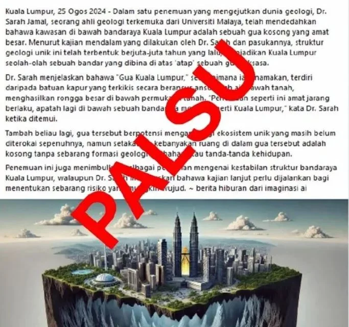 Artikel itu telah menyebarkan maklumat palsu yang boleh menimbulkan kekeliruan dan kebimbangan di kalangan orang awam, khususnya berkenaan insiden tanah jerlus yang baru-baru ini berlaku di Jalan Masjid India, Kuala Lumpur.