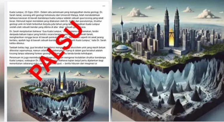 Universiti Malaya (UM) hari ini tampil menafikan dakwaan yang tersebar dalam satu artikel yang kononnya ditulis oleh seorang pakar geologi dari universiti itu, yang mendakwa terdapat sebuah gua kosong besar di bawah tanah Kuala Lumpur.