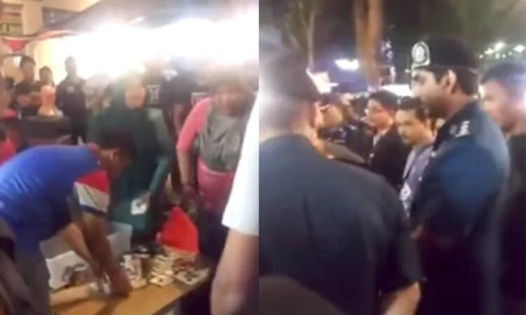 Kelihatan seorang pegawai penguatkuasa melihat peniaga itu mengamok sambil mempertikaikan hak seorang agama Islam. Malah peniaga tersebut turut bertindak agresif dengan meninggikan suara dan suasana menjadi kecoh.