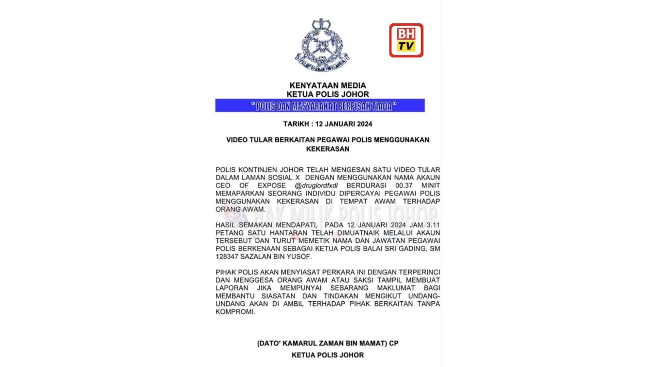 Video tular itu dikesan pada jam 3.11 petang hari ini, dengan turut menamakan pegawai polis terlibat berserta jawatannya.