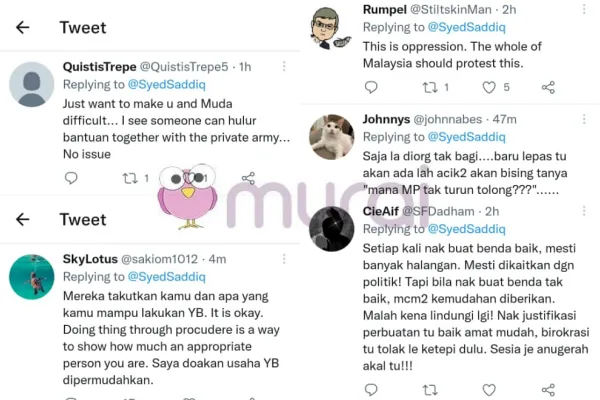 Berikutan itu, Syed Saddiq bersuara menerusi rakaman video yang di kongsikan di laman Twitter nya. Ahli Parlimen Muar ini menganggap tindakan kerajaan menolak permohonannya untuk bantu rakyat di kawasan sendiri, adalah sangat tidak munasabah dan bersifat dua darjat.