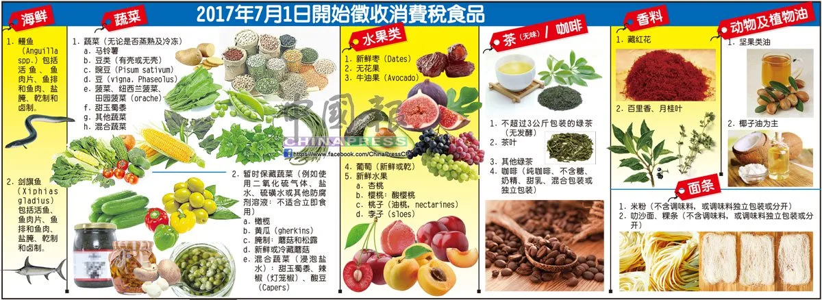 Semalam bertarikh 18 Jun 2017, China Press mengeluarkan laporan mengenai lebih daripada 60 barang makanan akan dikenakan GST, termasuk beberapa jenis makanan laut, sayur-sayuran, buah-buahan, teh, kopi, rempah dan mi, mulai Julai 1.