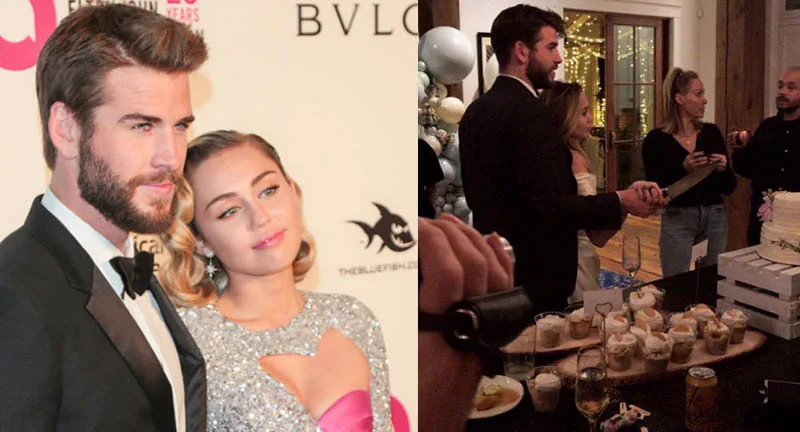 Dalam posting tersebut, Miley nampak mengenakan gaun tradisional berwarna putih, sedangkan Liam menggunakan tuksedo. Pasangan ini juga berdiri di depan kek pernikahan dengan memegang pisau.