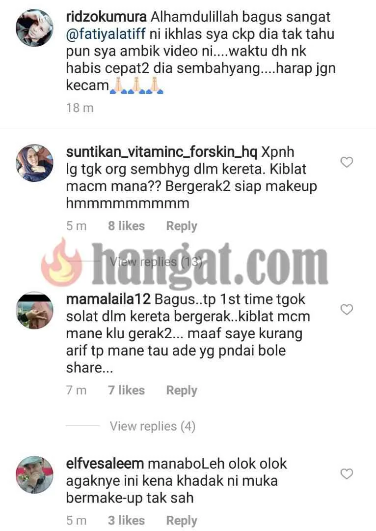 Akan tetapi ianya bukanlah kesalahan daripada Fathia, kerana niatnya hanyalah mahu menunaikan solat dan netizen pula terus berbalah mempertikaikan arah kiblat jika pelakon itu solat di dalam kereta yang sedang bergerak disamping mengenakan solekan yang tebal.