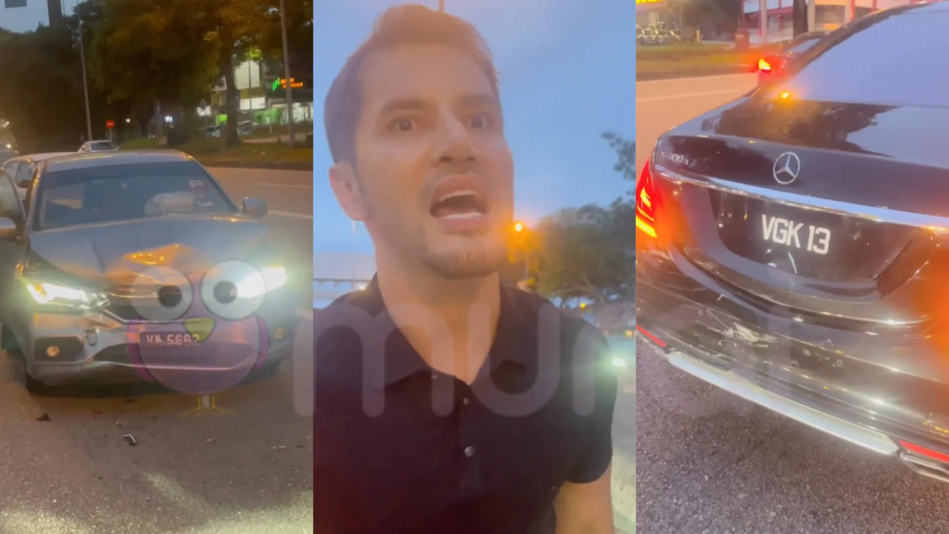 Menerusi video yang dimuatnaik di Instagram, Aliff dilihat memekik ke arah pemandu terlibat disebabkan kepalanya yang mengalami hentakan ketika kenderaannya dilanggar dari arah belakang.
