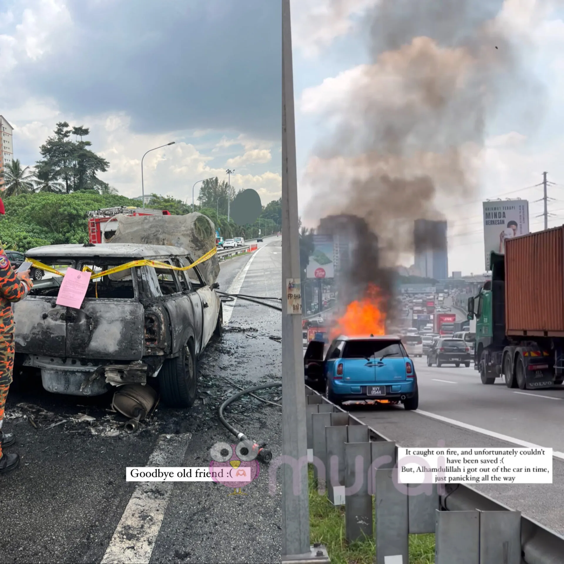 “Secara tiba-tiba terbakar, dan malangnya tak dapat diselamatkan. Tapi Alhamdulillah saya berjaya keluar dari kereta, hanya panik sepanjang perjalanan. Ketika bomba sampai, kereta sudah hangus terbakar.”-luah Erysha
