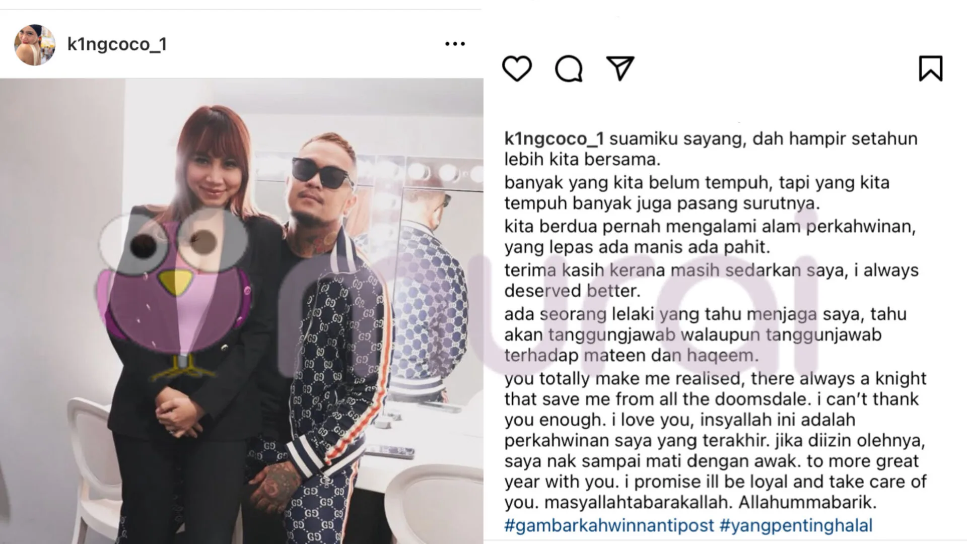 InsyaAllah ini adalah perkahwinan saya yang terakhir. Jika diizin olehnya, saya nak mati dengan awak. To more great year with you. Saya janji akan setia dan menjaga awak.”-tulis King Coco lagi
