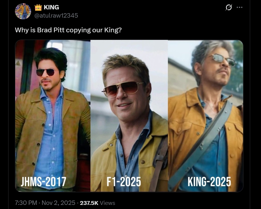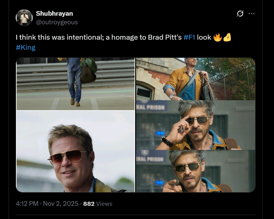 Walaupun troll menegaskan bahawa Shah Rukh meniru Brad Pitt, seorang pengguna media sosial mengatakan penampilan tersebut disengajakan kerana mahu memberi penghormatan kepada filem ‘F1: The Movie‘.