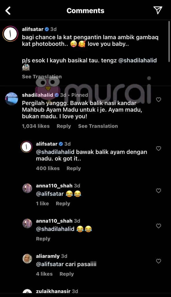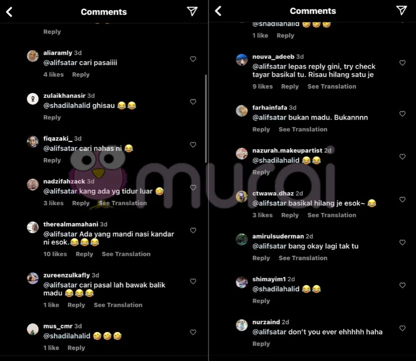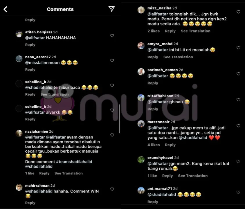 Baru-baru ini, komen di instagram milik Alif Satar telah menarik perhatian lensa MURAI MY. Alif berkongsi satu video pendek di instagramnya dengan caption