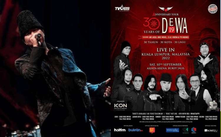 Pastikan temujanji anda bersama Anniversary Tour, 30 Years of Dewa 19 dengan pembelian tiket bermula jam 11 pagi, 18 Julai 2022 di laman tiket rasmi www.ticket2u.com.my atau hotline 019-9919055 (Whatsapp).