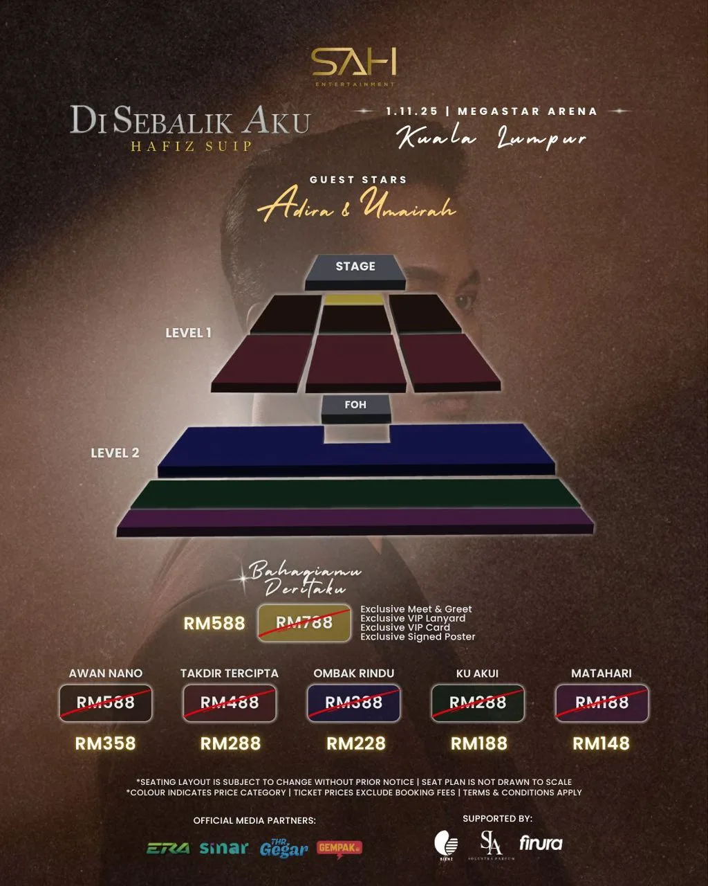 Menurut Pengarah Urusan SAH Entertainment, Sufi Rashid kehadiran tiga penaja termasuklah isterinya membolehkan pihak penganjur mengambil inisiatif mengurangkan harga tiket sebagai tanda penghargaan kepada peminat.