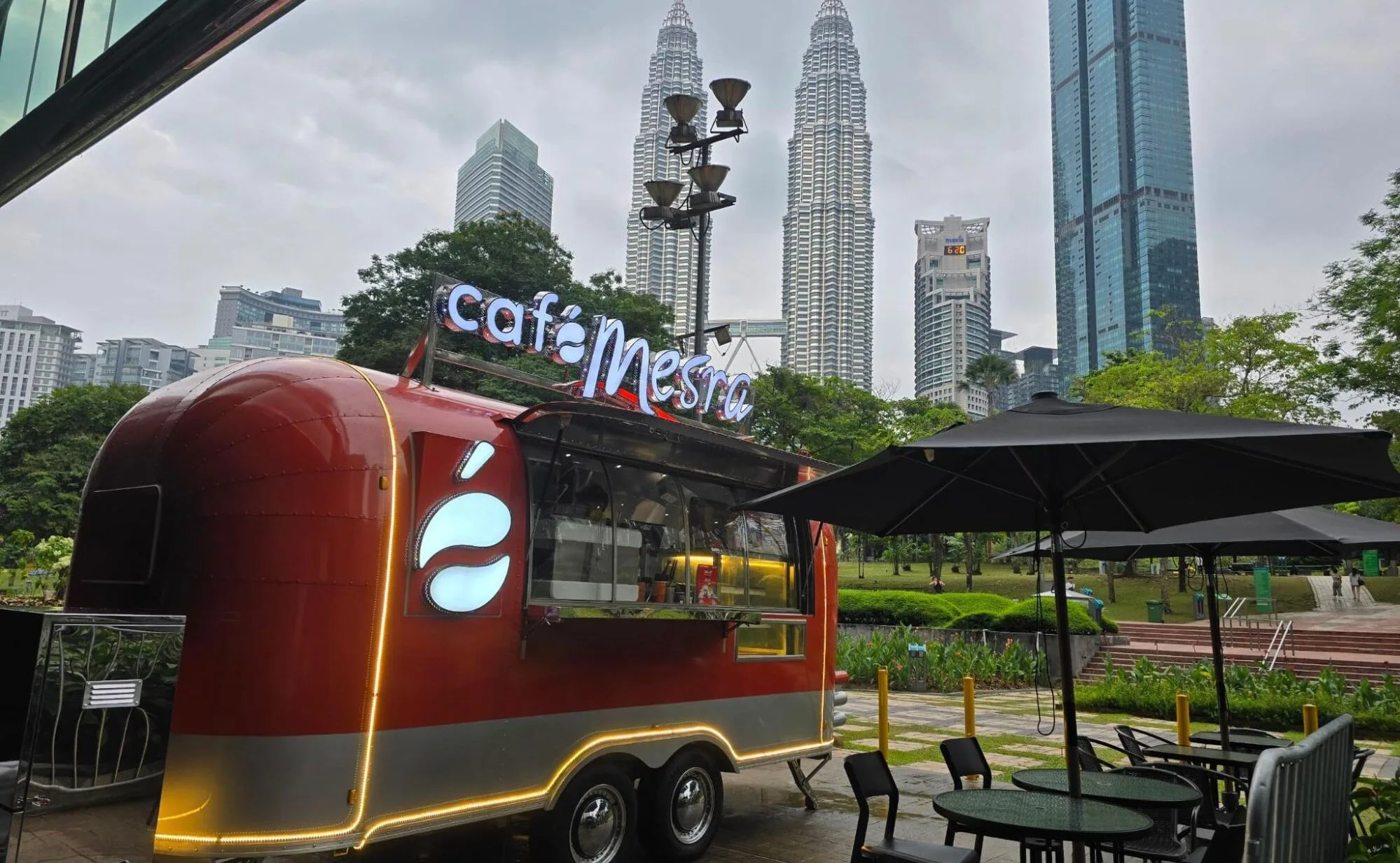 Antara lokasi menarik termasuk Café Mesra @ KLCC (Treler) yang menjadi tumpuan selepas berjoging di taman, menawarkan Cappuccino (RM8) dan pastri segar.