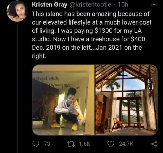 Sebuah tweet dari akaun Twitter @kristentootie atau Kristen Gray menjadi viral. Dia telah mengajak orang ramai untuk pindah ke Bali saat pandemik virus Corona.