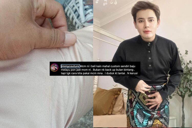 Kenyataan lelaki ini telah dibalas oleh pereka fesyen tempatan, Jimmy Couture. Jimmy berkongsi pandangannya di Instagram berhubung isu ini dan mendakwa mana-mana kain baju melayu ternyata agak sensitif dengan mana-mana permukaan.