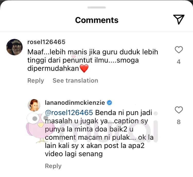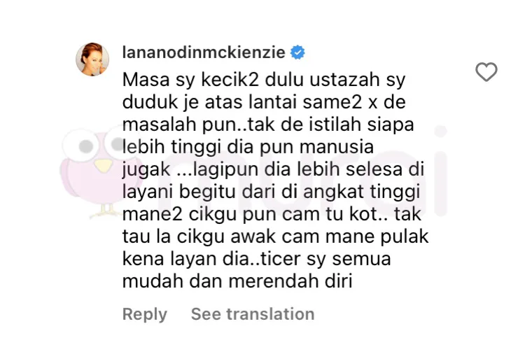 Tidak berdiam diri, Lana dilihat membalas komen netizen berkenaan dengan menyatakan bahawa guru-gurunya lebih selesa untuk dilayani sebegitu dan sangat merendah diri.