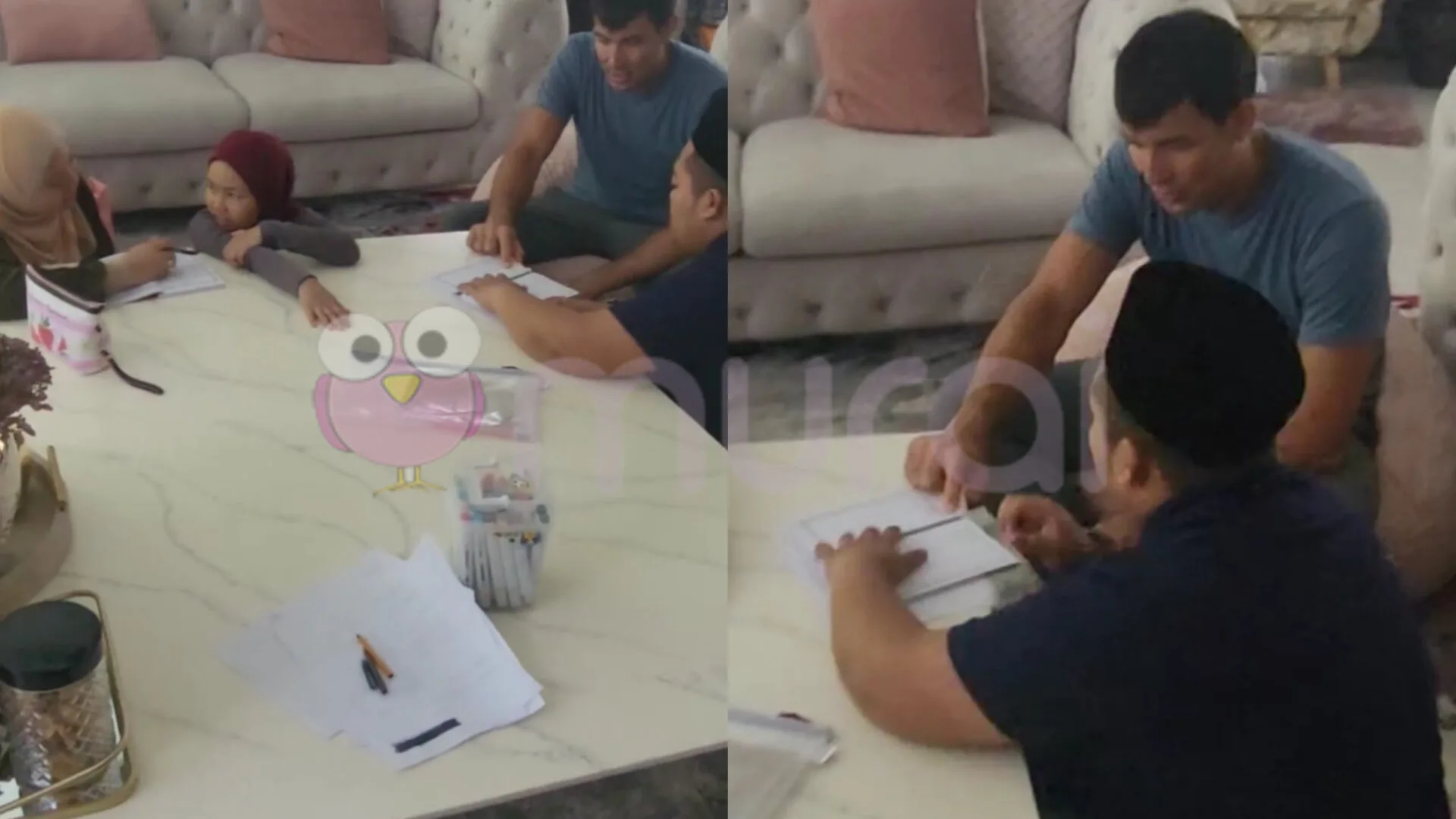 Pelakon dan usahawan, Lana Nodin berkongsi momen istimewa mengenai suami, Daud Mckenzie dan anak-anaknya sedang mengaji Iqra di bawah bimbingan guru yang dijemput ke rumah mereka.