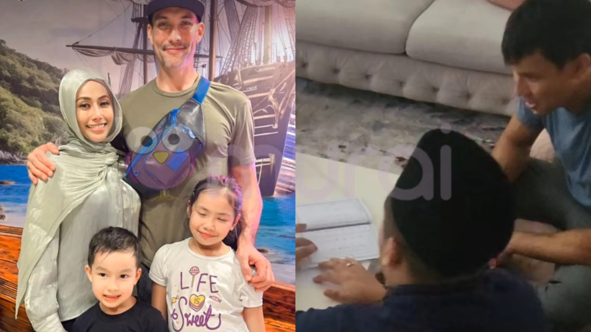 Pelakon dan usahawan, Lana Nodin berkongsi momen istimewa mengenai suami, Daud Mckenzie dan anak-anaknya sedang mengaji Iqra di bawah bimbingan guru yang dijemput ke rumah mereka.
