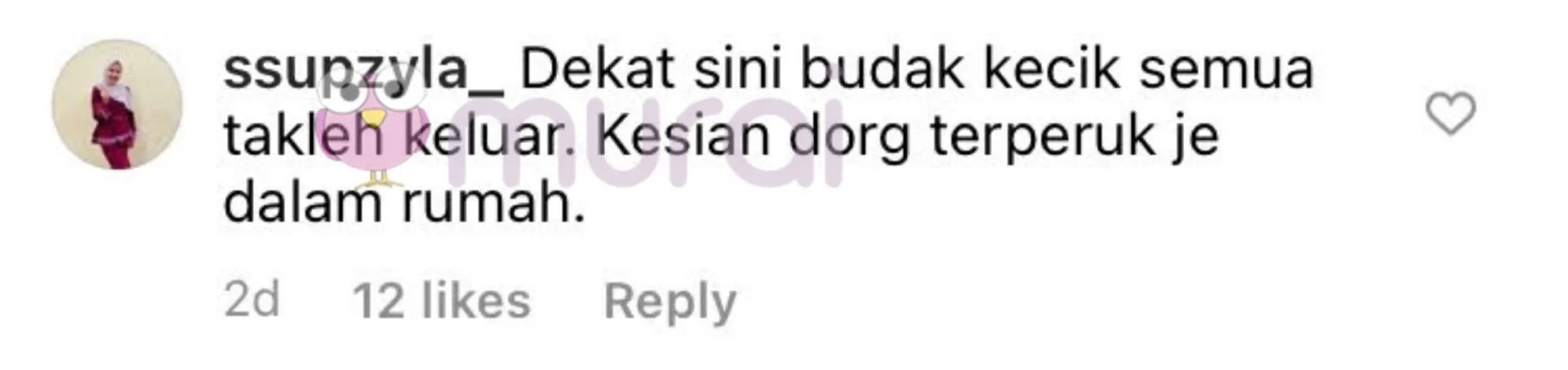 “Dekat sini budak kecik semua takleh keluar. Kesian dorang semua terperuk je dalam rumah.”-Komen Warganet