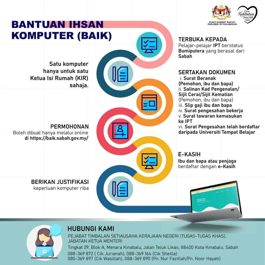 Debaran kos belajar makin terasa, tapi berita baik untuk anak Sabah! Tahun 2026 menyaksikan kerajaan negeri kembali tampil dengan inisiatif bantu pelajar miliki komputer sendiri memang win Kerajaan negeri Sabah kini menawarkan Bantuan Ihsan Komputer (BAIK) bagi tahun 2026 untuk pelajar dari negeri tersebut yang sedang menyambung pelajaran di Institut Pengajian Tinggi (IPT) yuntuk yang tengah struggle nak lengkapkan keperluan belajar.