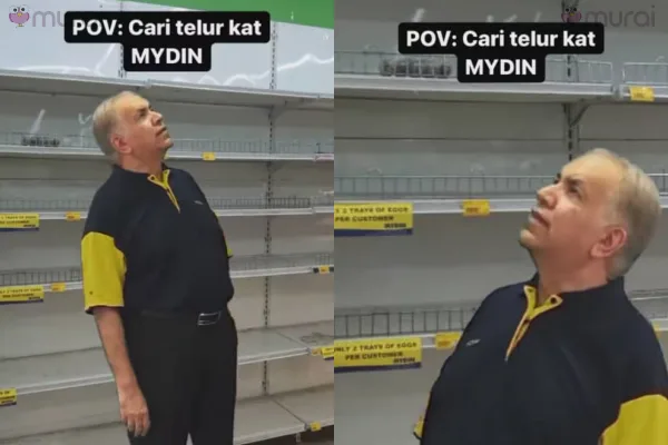 Dalam video yang dimuat naik Instagram Mydin Malaysia, pemilik gedung pasaraya terbesar tanah air ini menunjukan reaksi mencari-cari telur ayam dengan berlatar belakangkan rak bahagian telur ayam yang kosong.