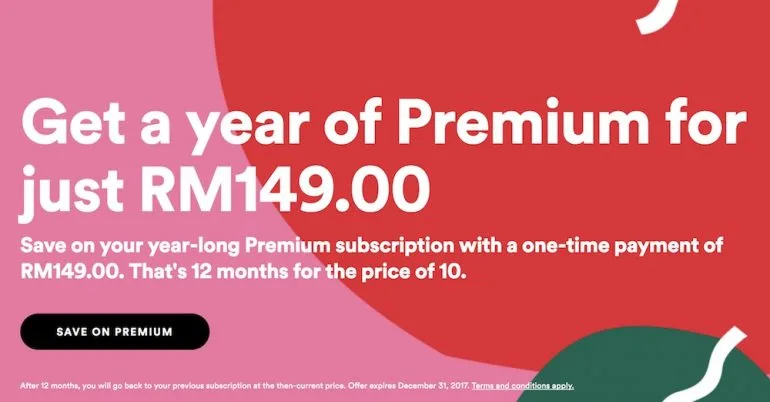 Dengan promosi yang kini sedang berlangsung sehingga 31 Disember ini, anda dapat jimat RM30 apabila Spotify perkenalkan harga promosi sebanyak RM149 untuk langganan premium setahun.