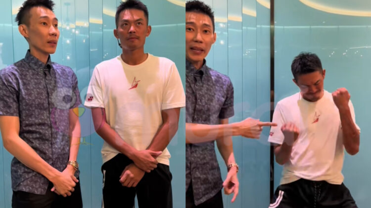 Menerusi perkongsian Lee Chong Wei di laman TikTok, Lin Dan diminta untuk menunjukkan gerakan signature Chong Wei.