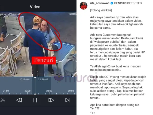 Tular di media sosial milik usahawan kosmetik Datin Rita Sosilawati, 37, baru ini di mana dia memuatnaik rakaman video kamera litar tertutup (CCTV) milik restorannya di Instagram.