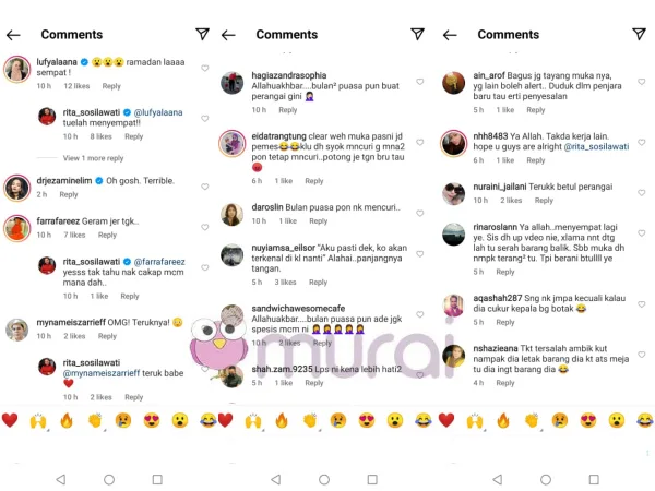 Muatnaik usahawan kosmetik ini mendapat perhatian selebriti, kenalan rapat dan orang ramai di media sosialnya. Masing-masing memberi komen mengecam tindakan pencuri tersebut melakukan perbuatan terkutuk itu dalam bulan mulia ini.